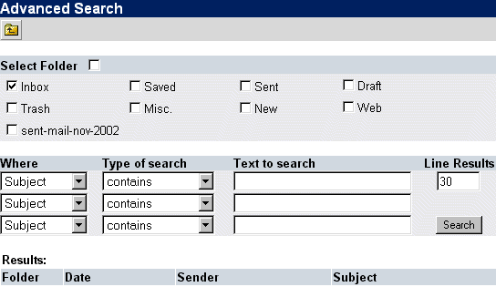 | Select Folder | Select which e-mail folders (mailboxes) you wish to search through. By checking off the checkbox beside "Select Folder", all the folders will become selected. |